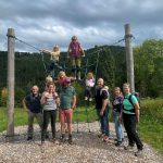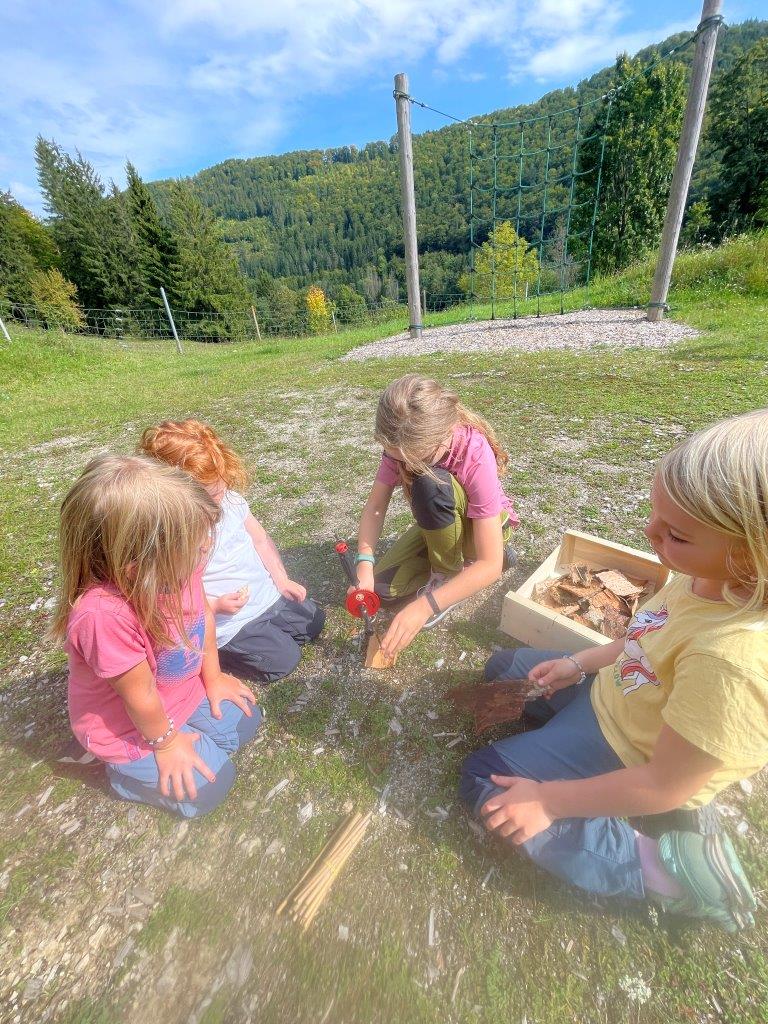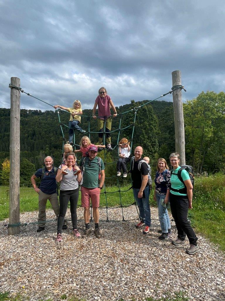 Bei idealem Wanderwetter ging es für die Familiengruppe des Albvereins dieses Mal zu den Tuffsteinkaskaden nach Bärenthal. Entlang der Bära folgten wir zuerst einem neu gestalteten Stück auf dem es viele bunte, gebastelte Tiere und Pflanzen zu entdecken gab. Dank der Regenfälle der letzten Wochen führte der kleine Wasserfall mit seinen Terrassen auch einiges an dem kühlen Nass. Hier entsteht in tausenden von Jahren neuer Kalktuffstein, der einige Meter weiter bis in die 2010er Jahre abgebaut und in der Region verbaut wurde. Der ältere Gebäudeteil des Kindergartens in Böttingen ist zum Beispiel aus diesem Material entstanden. In gemütlichem Tempo schlenderten wir zu unserem Ziel, dem Waldspielplatz oberhalb des Sportplatzes. Dort nahmen die Kinder gleich die Spielgeräte in Beschlag, während die Erwachsenen sich um das Grillfeuer und im die Stärkung kümmerten. Mit Feuereifer wurden anschließend noch kleine Boote aus Rinde und Stöcken gebastelt, die die Kinder auf dem Rückweg in der Bära schwimmen lassen durften. Unsere nächste – und für dieses Jahr letzte –  Veranstaltung ist das Kürbis- und Rübenschnitzen im Oktober an der Skihütte (weitere Infos folgen auch auf unserer Homepage https://boettingen.albverein.eu).